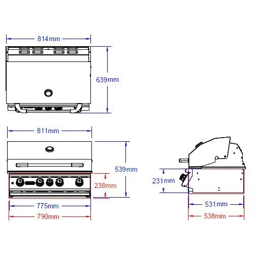 Der Bull BBQ Angus Gasgrill aus Edelstahl hat eine doppelwandige Grillhaube, die aus einem Stück gefertigt wurde. Sie hält die Wärme im Grill, so dass Ihr Grillgut perfekt gelingt. Das integrierte Thermometer im Deckel zeigt Ihnen zuverlässig die Temperatur in der Garkammer an. Dank der 4 Edelstahl-Stabbrenner mit insgesamt 22 kW und Piezozündung kommt der Einbaugrill Angus von Bull BBQ schnell auf Betriebstemperaturen.