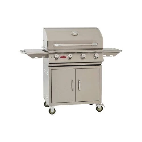Der Bull BBQ Lonestar Gasgrill aus Edelstahl hat eine doppelwandige Grillhaube, die aus einem Stück gefertigt wurde. Sie hält die Wärme im Grill, so dass Ihr Grillgut perfekt gelingt. Das integrierte Thermometer im Deckel zeigt Ihnen zuverlässig die Temperatur in der Garkammer an. Dank der 4 Edelstahl Stabbrenner mit insgesamt 17,6 kW und Piezozündung kommt der Grillwagen Lonestar von Bull BBQ schnell auf Betriebstemperaturen.