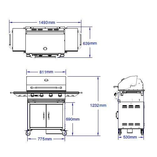 - Maße Grillwagen (HxBxT): 123,2 x 149,3 x 63,9 cm