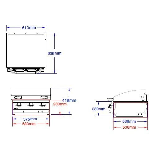 Der Bull BBQ Plancha Gasgrill aus Edelstahl hat eine doppelwandige Grillhaube, die aus einem Stück gefertigt wurde. Sie hält die Wärme im Grill, so dass Ihr Grillgut perfekt gelingt. Dank der 3 Edelstahl-Barbrenner mit insgesamt 13 kW und Piezozündung kommt der Einbaugrill Plancha von Bull BBQ schnell auf Betriebstemperaturen.