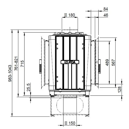 Kachelofeneinsatz Leda Turma H80 W DS 12/13 KW Wasserführend