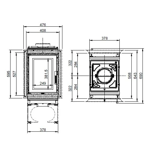 | Sichtscheiben | Eckkamin: 2 Scheiben, Eckscheiben |