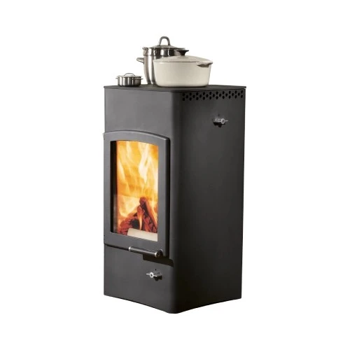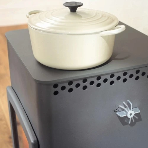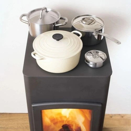 Der Kaminofen Lucy Cook aus dem Hause Austroflamm lässt mit seiner Leistung von 6 kW und vielen nützlichen Funktionen kaum Wünsche offen. Dieses Modell überzeugt mit einer großen, vollflächigen Kochfläche, die maximale Flexibilität für kleine und große Töpfe erlaubt. Hier können Sie herrliche Menüs zubereiten und Ihr Essen mit einer wunderbaren Aussicht auf das prasselnde Feuer genießen. Aber auch wenn Sie den Lucy Cook nur zum Wärmen und Träumen benutzen möchten, ist dieser Kaminofen eine perfekte Wahl. Dank seinem ansprechenden zeitlosen Look macht er in nahezu jeder Wohnlandschaft eine gute Figur. Hier profitieren Sie von 2 Öfen in einem. Denn der Lucy Cook lässt sich als Kochofen nutzen, ist aber außerdem eine herrliche Wärmequelle.