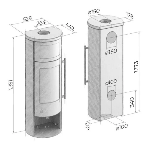 Diese Sicherheitsabstände sind einzuhalten (hinten, seitlich, vorne): 300, 350, 1000 mm. Primär- und Sekundärluft sind regelbar und der Feuerraum ist mit echten Ofenschamotten verkleidet. Der Rost ist bei dem Kaminofen Aprica 2 Cook aus Gusseisen und verschließbar. Der Außenluftanschluss ist hinten und unten möglich. Dieser Ofen besitzt auch einen Mehrpunktsicherheitsverschluss. Dieses kleine Kraftpaket und Raumwunder, der Kaminofen Drooff Aprica 2 Cook ist in Schwarz und Naturstein erhältlich und kann mit verschiedenen Elementen individualisiert werden.