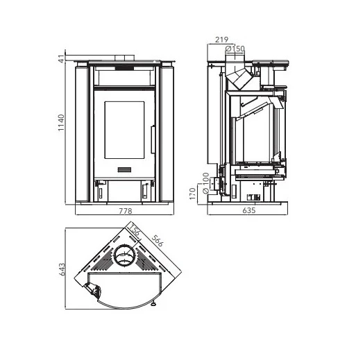 - Ø Rauchrohranschluss / Luftstutzen mm 150 / 100