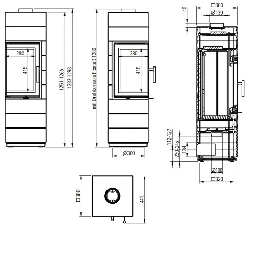 | Bauart | Eckscheibe, optionaler Speicherofen, optional Drehbar |