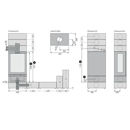 | Rauchrohranschluss | oben, hinten, seitlich |