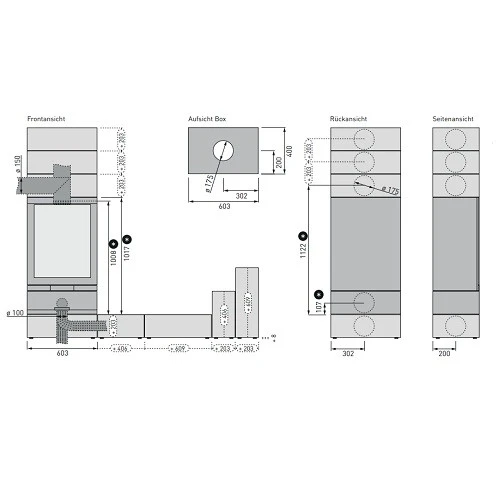 | Rauchrohranschluss | oben, hinten, seitlich |
