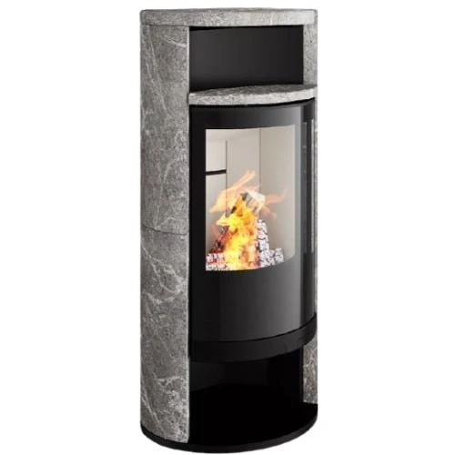 – Ein mit Stahlverkleidung oder Natursteinverkleidung seitlicher Speicher: mit Speichermasse ausgegossen, dadurch kann der Holzofen die Wärme problemlos über mehrere Stunden halten.