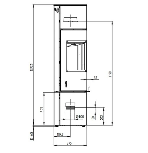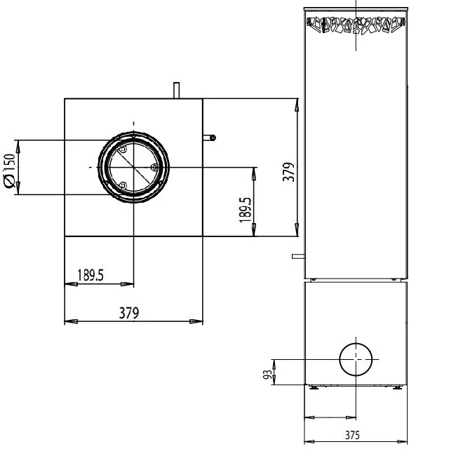 - Rauchrohranschluss nach oben Ø 150 mm